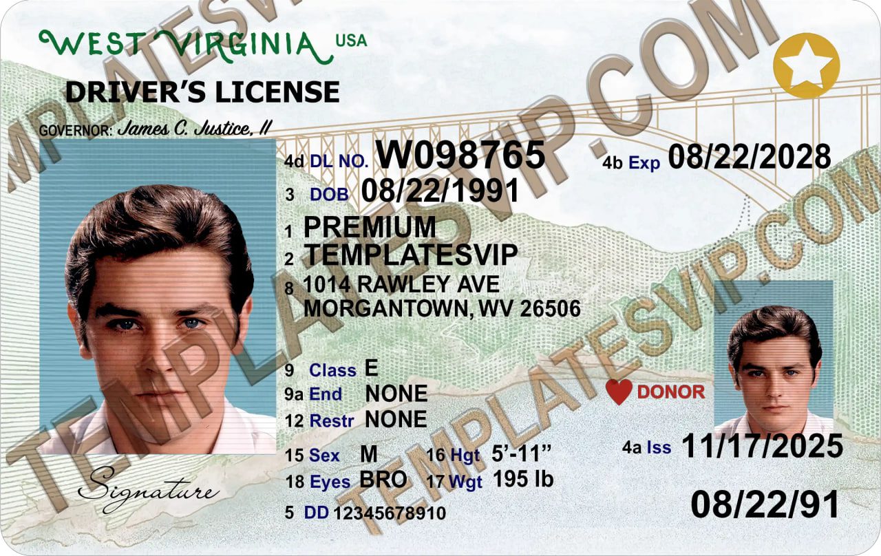West Virginia (WV) – Drivers License V2 PSD Template Download 2025 UV Layer